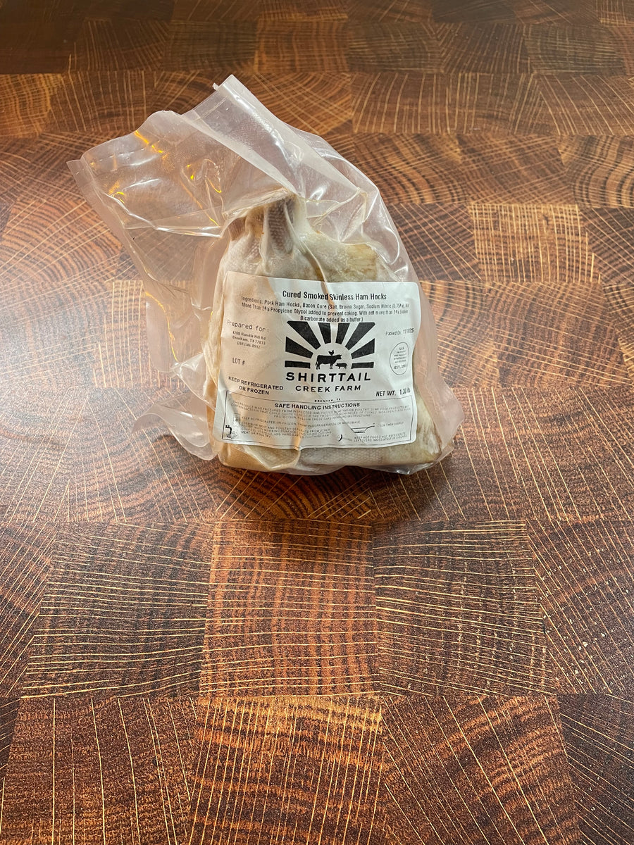 Our Pastured Pork comes from pigs that are raised on the pasture here at Shirttail! They spend their days rooting for roots, grubs and nuts from our pecan, walnut, and oak trees on the farm. We supplement them with a custom millled, Non GMO Feed that contains NO CORN and NO SOY.